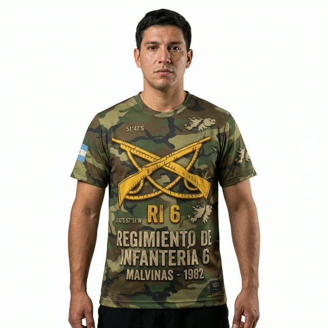 Honra la historia y el valor con nuestra exclusiva Remera del Regimiento de Infantería 6, protagonista de la gesta de Malvinas en 1982. Esta prenda combina un diseño táctico con un profundo sentido patriótico.