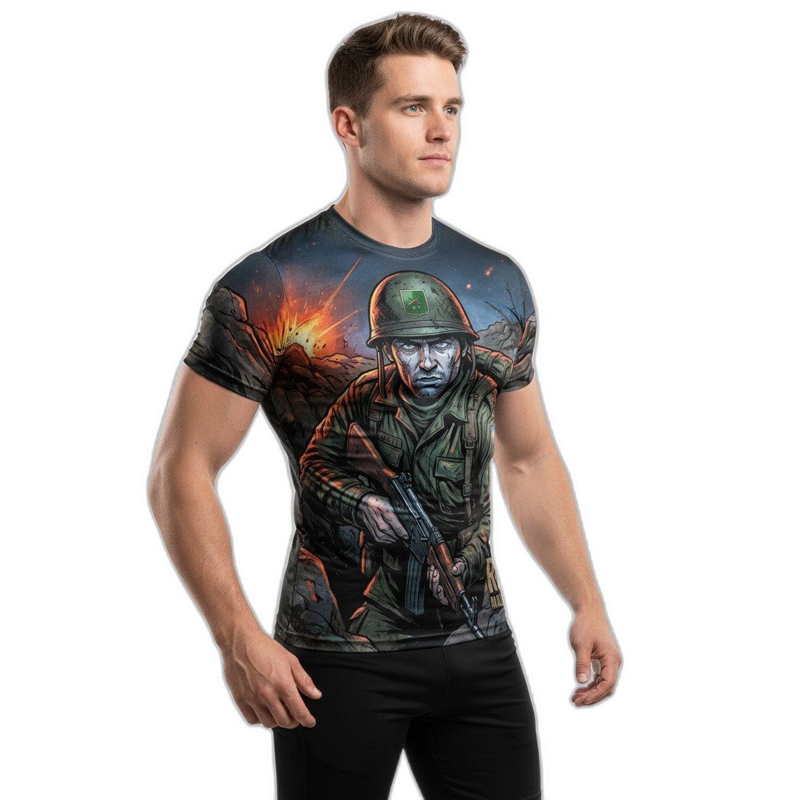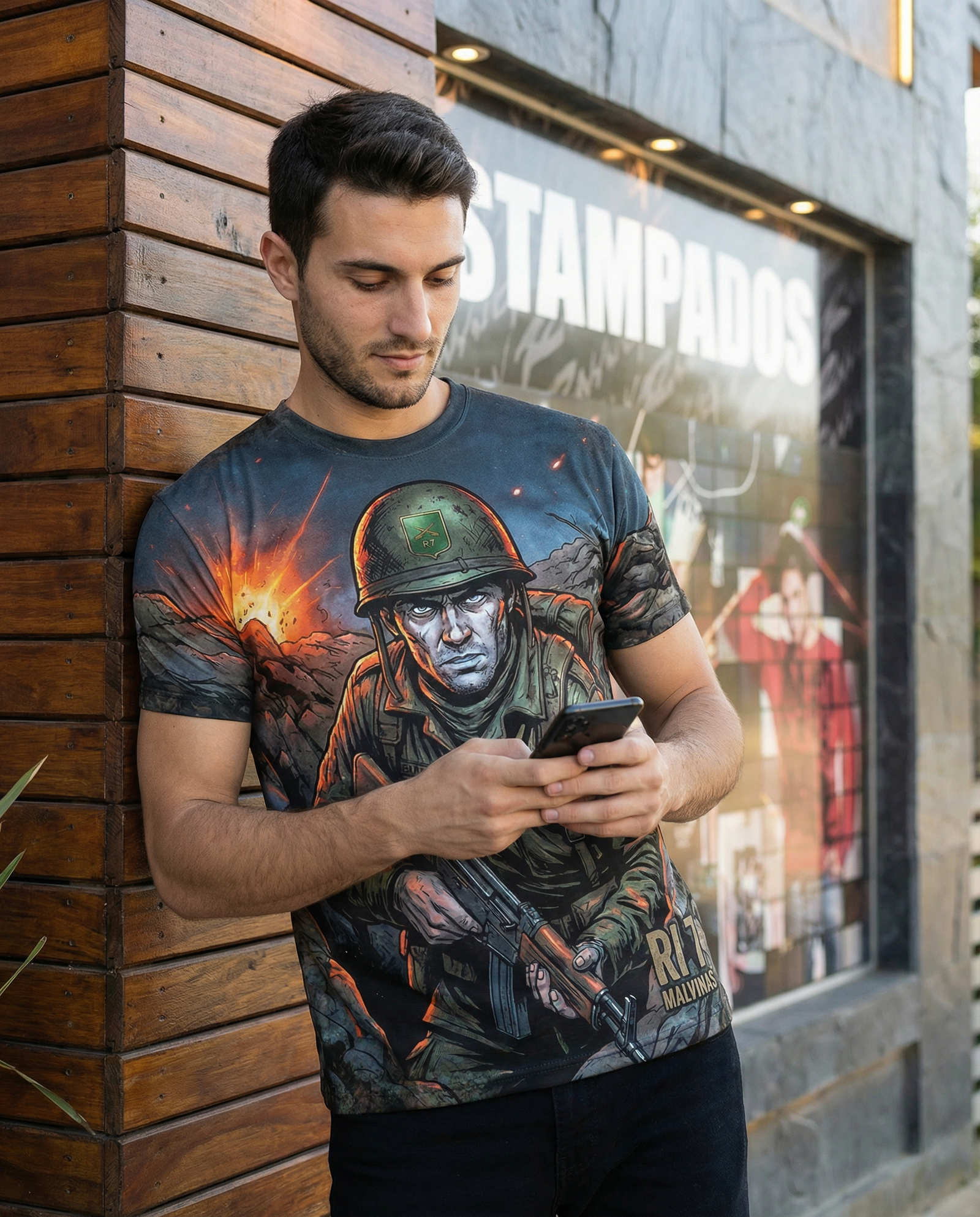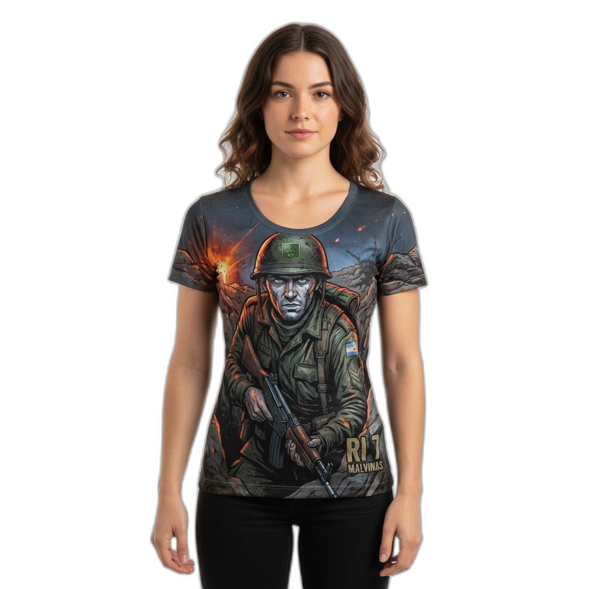 – **Estilo Moderno:** Su diseño contemporáneo presenta un corte ligeramente ajustado que realza la figura, mientras que la estampa “Malvinas RI 7 La Plata” añade un toque distintivo y lleno de significado.